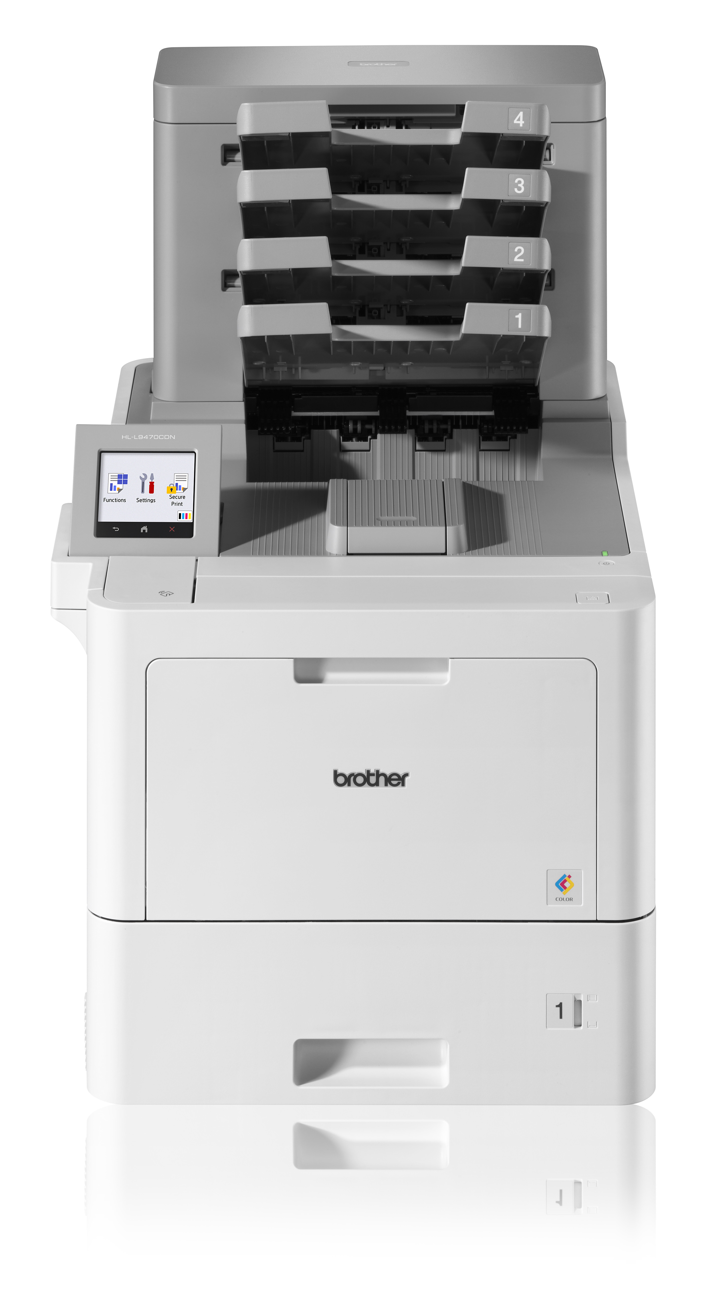 Hamarosan érkezik! ** Brother HLL9470CDN professzionális színes lézernyomtató * 40 lap/perc, duplex: 40 lap/perc * 2400 x 600 dpi * 1 GB memória + 8 GB külső tárolóeszköz * USB2, Gigabit hálózat, NFC, WiFi opció (WiFi direct) * Nyomtatás első és hátsó USB host csatlakozóról * NFC azonosítás és nyomtatás * 8,76 cm-es színes érintőkijelző * 520 + 100 lapos adagoló, max. 5 papírtálca (opció - max. 2.600 + 100 lap kapacitás) * Mobil nyomtatás: NFC, Apple AirPrint, Mopria, Brother Mobile Connect (Android&Apple AirPrint) * Terhelhetőség: 12.000 oldal/hó * Opciók: * tároló (MX-4000), tűző (SF-4000; tűzőkapocs: SR100 /2x5.000 db/) * WiFi modul: NC-9000w * Kártyaolvasó tartó: CH-1000 * Kellékek: * induló: BK: 9.000 oldal, színes: 6.500 oldal/szín (CYM) * TN821XL: BK: 12.000BK: oldal, színes: 9.000 oldal/szín (CYM) * TN821XXL: BK: 15.000BK: oldal, színes: 12.000 oldal/szín (CYM) * Dobegység: DR821CL: 100.000 oldal (3 oldal/feladat esetén) * Papírtovábbító szalag: BU800CL: 150.000 oldal (2 oldal/feladat esetén) * Hulladékfesték-kazetta: WT800CL: 100.000 oldal
