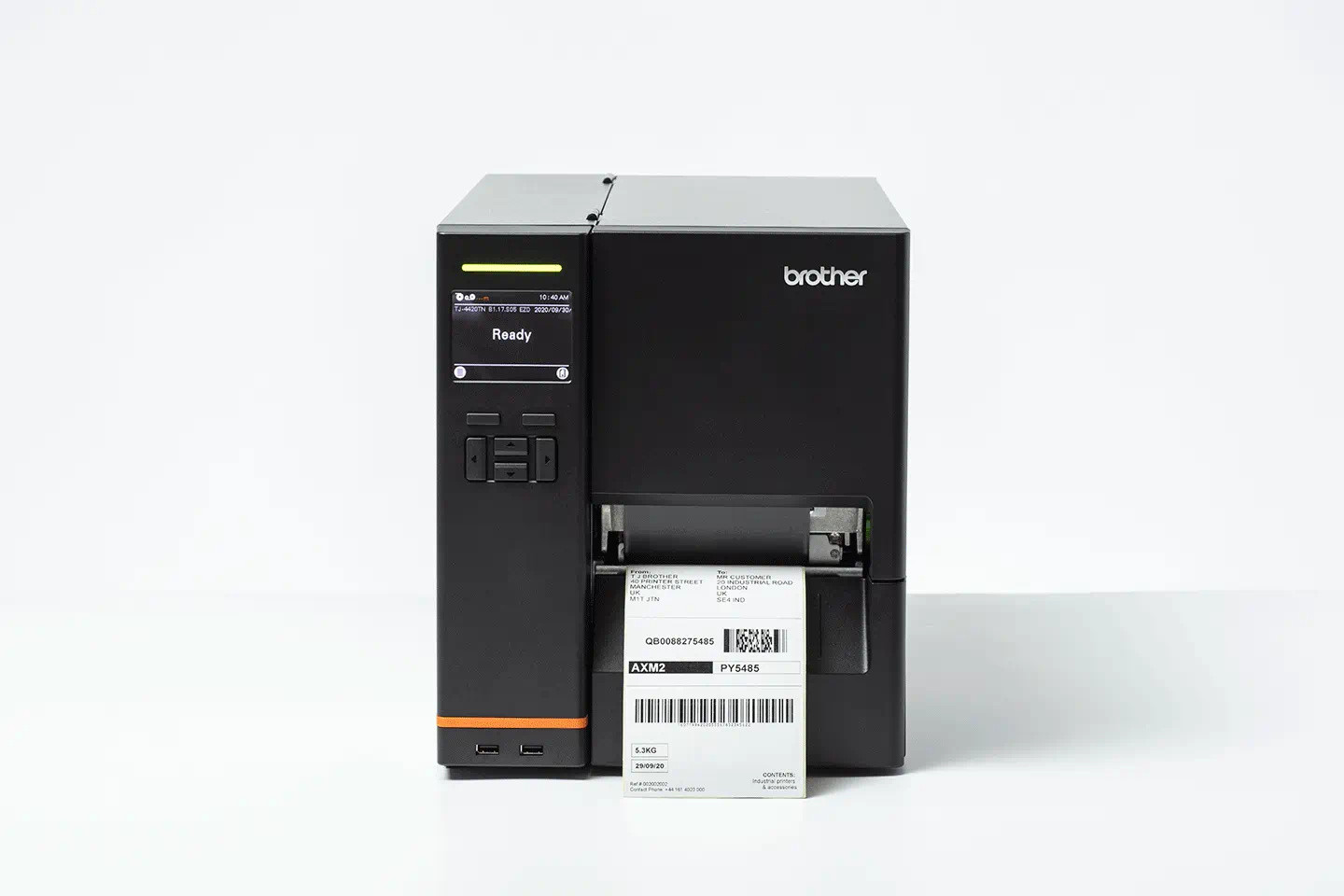**Brother TJ-4420TN ipari címkenyomtató** Thermal Transfer és Direct Thermal technológia * 203 dpi * LCD kijelző * 256MB SDRAM * 512MB FLASH + MicroSD max 32 GB * Közvetett hőnyomtatás (thermal transfer) * Tintamentes, direkt hőnyomtatás (direct thermal) * Maximális tekercsátmérő: 203.2 mm (8") * Maximális nyomatszélesség (hőfej szélessége): 104 mm * Maximális nyomathosszúság: 25.400 mm * Festékszalag minimális szélessége: 25.4 mm * Festékszalag maximális szélessége: 114.3 mm * Maximális nyomtatási sebesség: 14ips (356 mm/s) * USB 2.0 (High Speed) Type B, RS232C soros csatlakozó (max. 115200 bps), Ethernet LAN (10/100 Base-TX), USB host: billentyűzet, scanner, vagy tároló (USB flash drive, klónozás és beállítás) * Nyomtatási nyelvek: FBPL-EZD (Compatible to FBPL ll, EPL ll, ZPL ll, DPL)