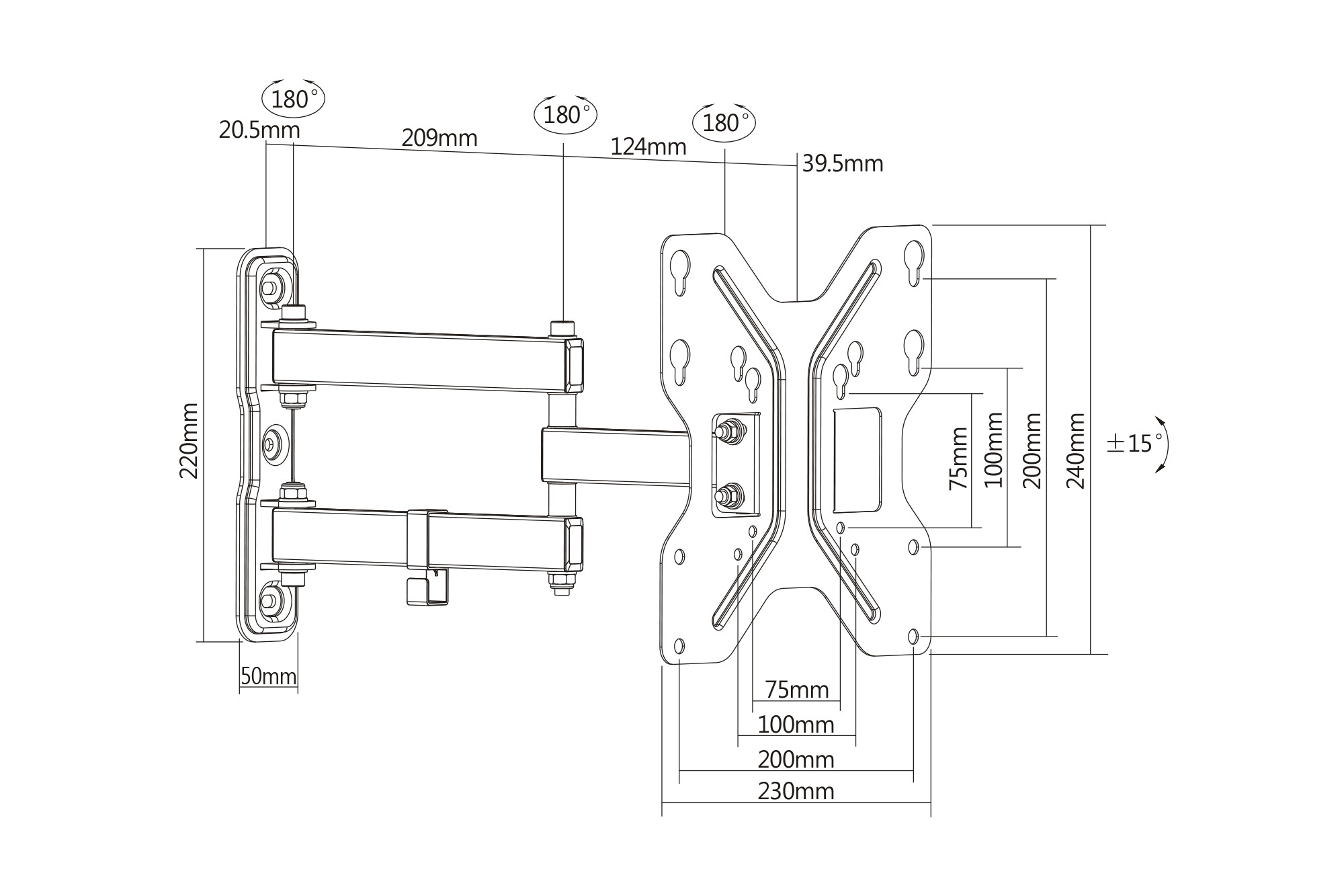 DIGITUS DA-90357 Univerzális VESA 200x200 forgatható fali konzol