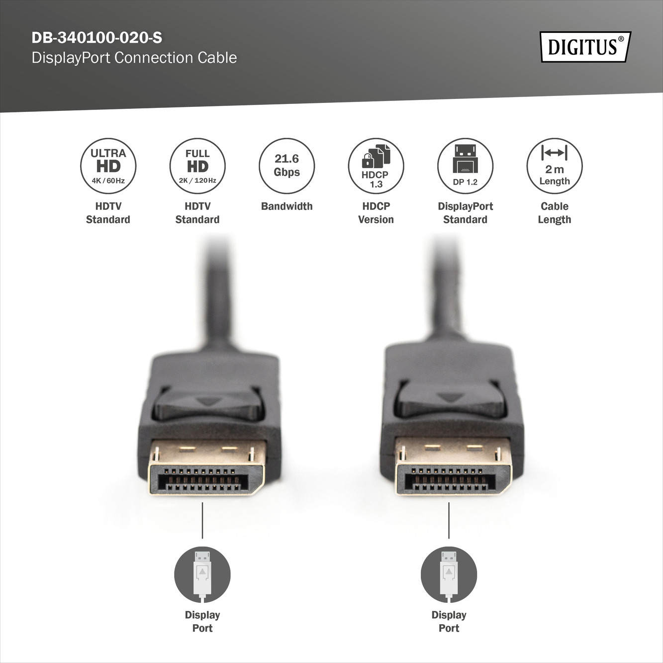 DIGITUS DB-340100-020-S Display port apa -> display port apa 2m kábel
