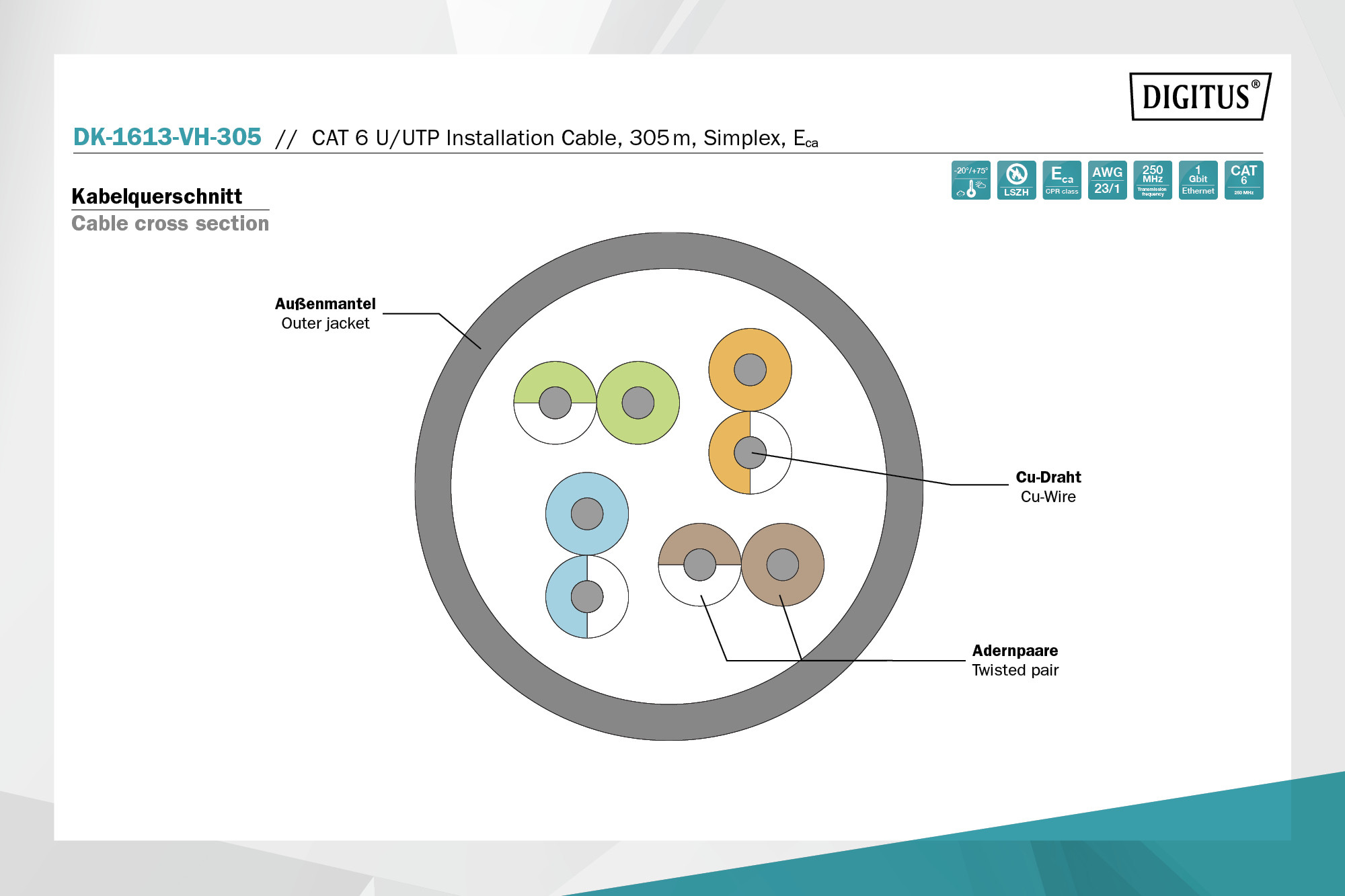 DIGITUS DK-1613-VH-305 Cat.6 U/UTP 250MHz Eca LSZH 305m lila fali kábel