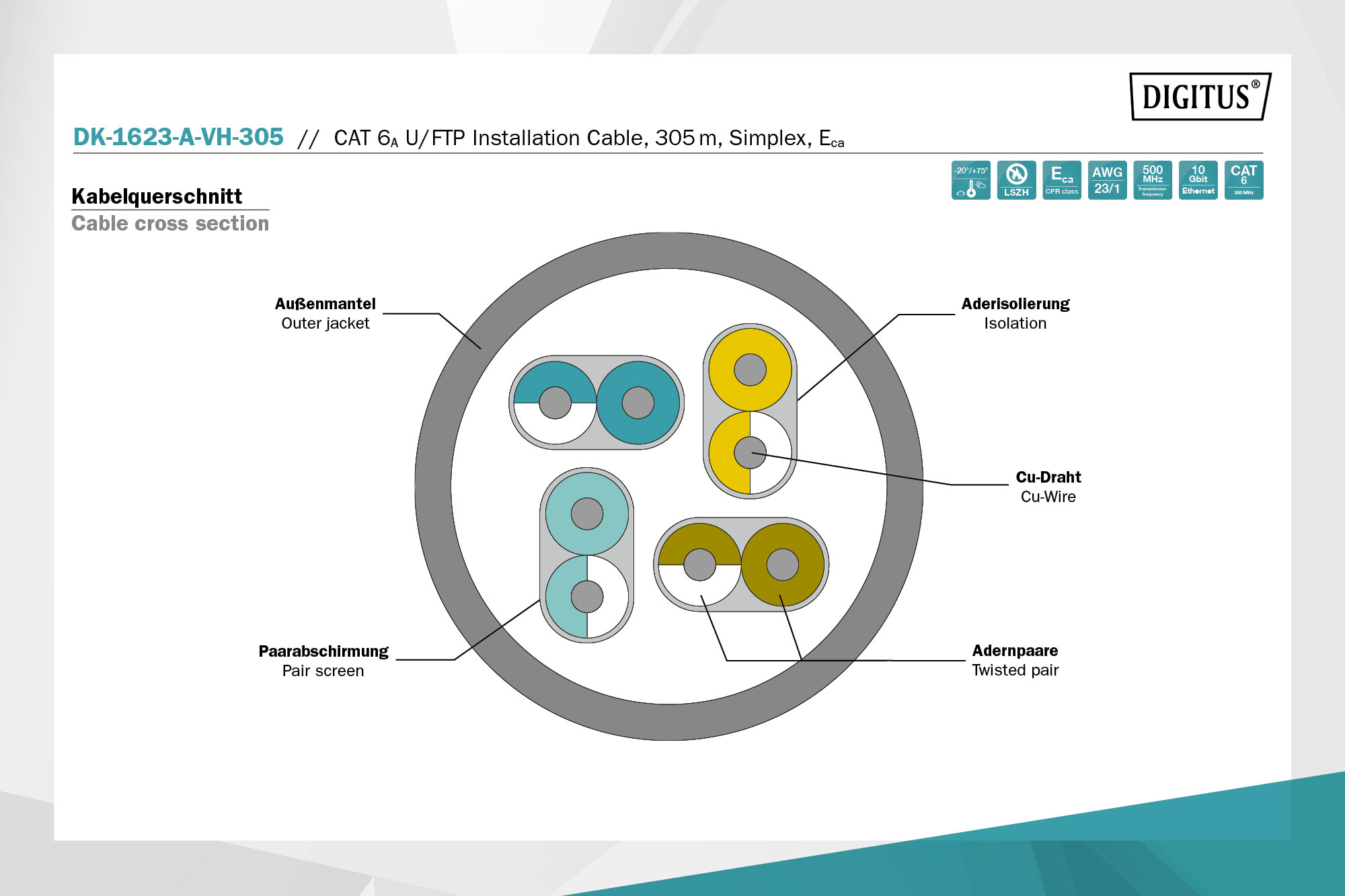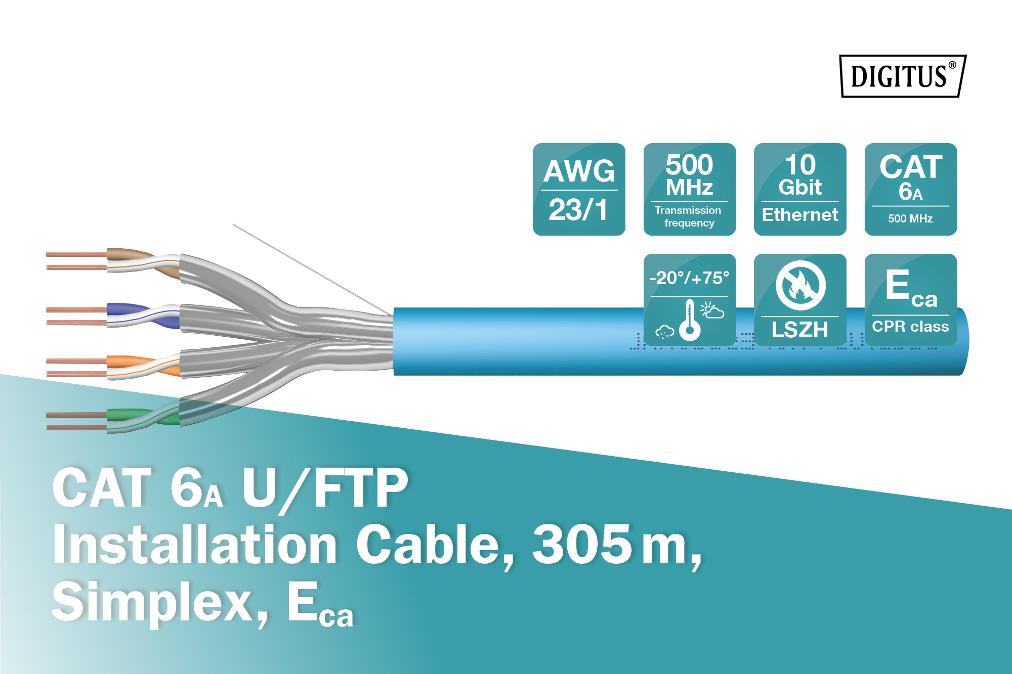 DIGITUS DK-1623-A-VH-305 Cat.6A U/FTP 500MHz LSZH 305m dobozos kék fali kábel