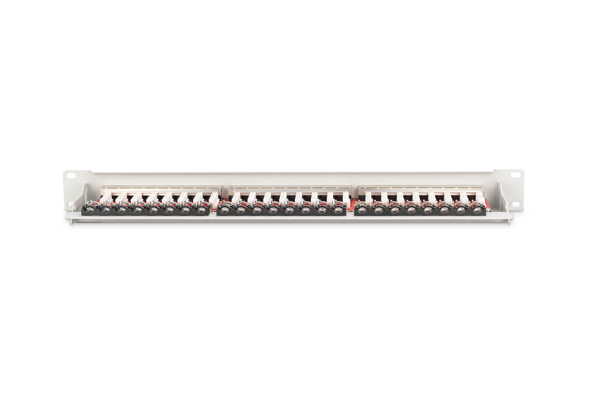 DIGITUS DN-91624S-EA 19" 1U 24port Cat.6A kompakt szürke árnyékolt patch panel