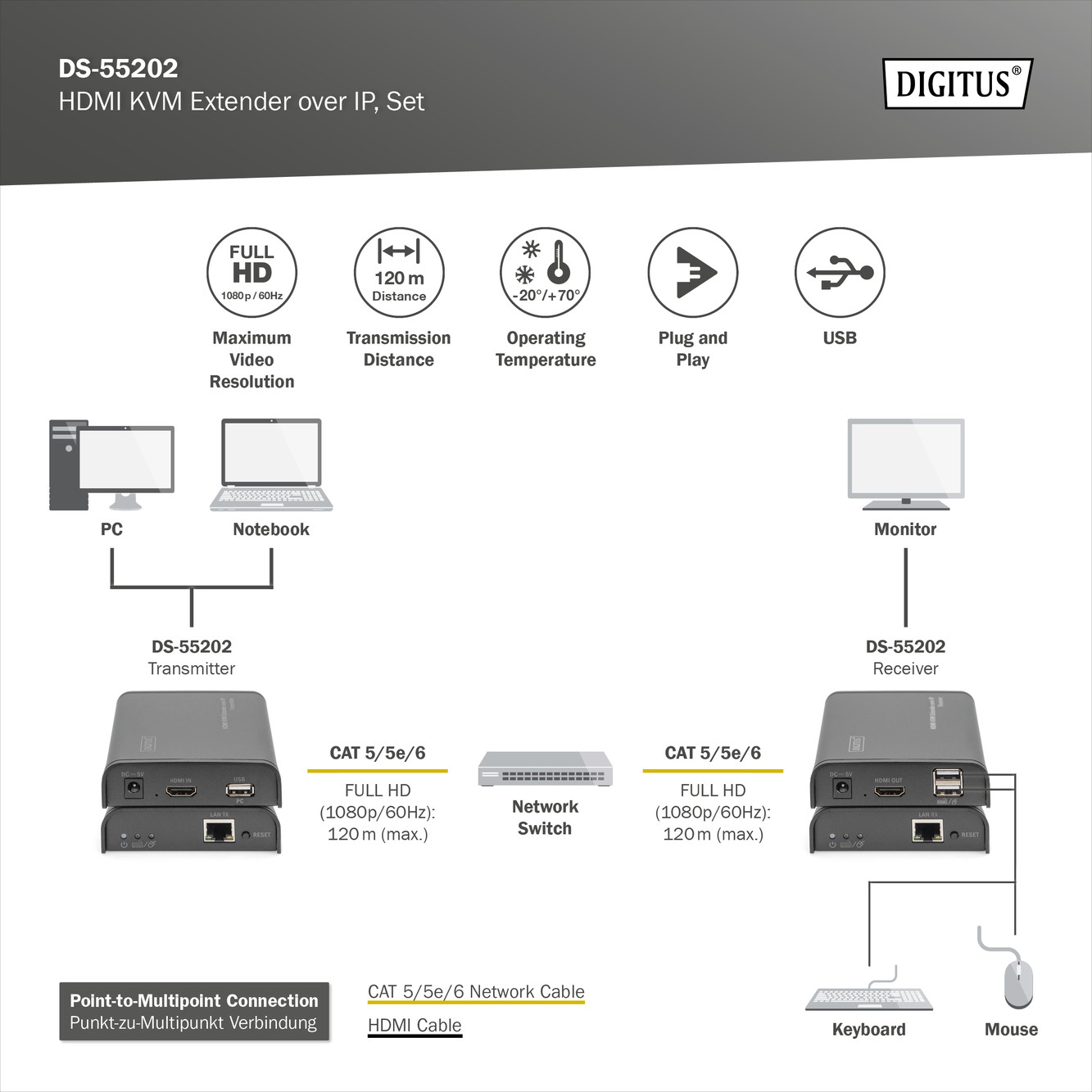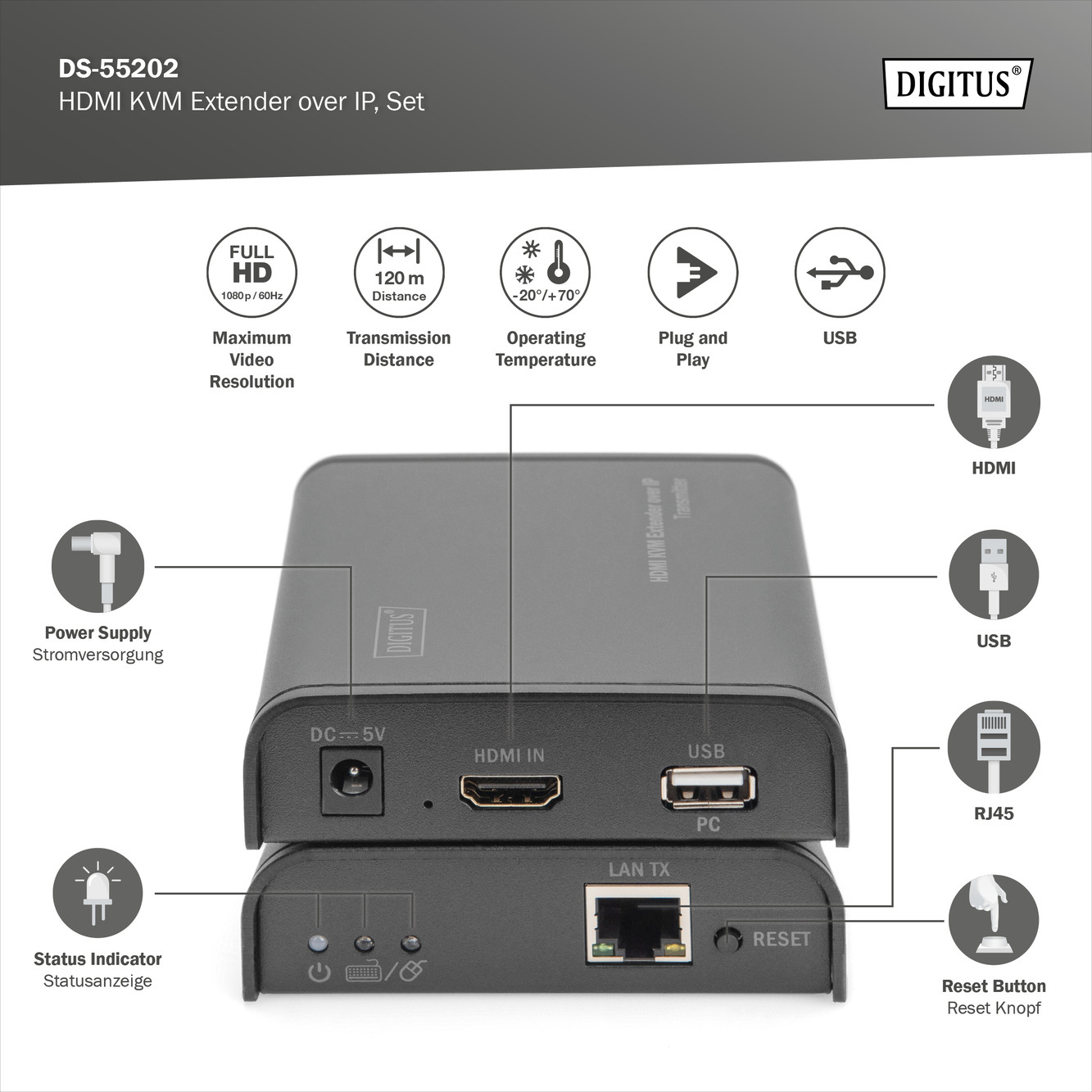 DIGITUS DS-55202 HDMI Full HD 120m extender szett