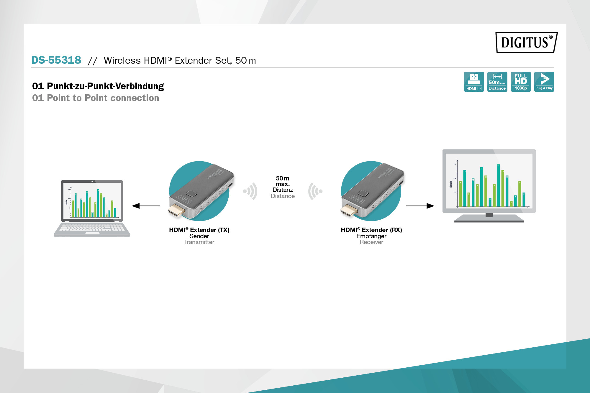 DIGITUS DS-55318 HDMI vezeték nélküli 50m extender szett (adó és vevőegység)