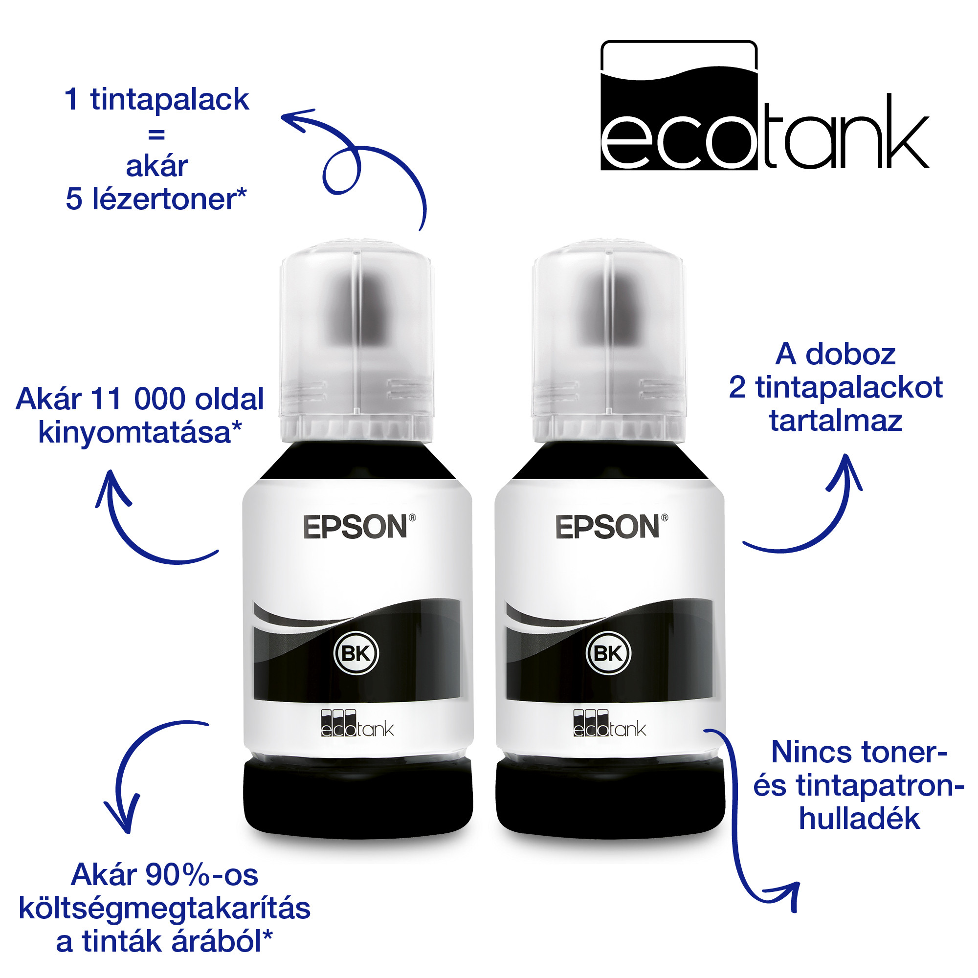 **Regisztráció esetén 3 éves kiterjesztett garancia elérhető 2025.03.31-ig! Az igényléseket a termék (végfelhasználói) vásárlásától számított 30 napon belül kell beküldeni! Regisztráció és részletek: https://www.epson.hu/hu_HU/promotions/extended-warranty *Multifunkciós: nyomtat, beolvas, másol, faxol *Nyomtatási sebesség ISO: 20 lap/perc *Nyomtatási felbontás: 1.200 x 2.400 dpi *Tinták: No.110 (120ml ~6K) vagy No.110S (40ml ~4K) PIGMENT / Maintenance Box: T04D1 (C13T04D100) *Szkennelési sebesség: 7 oldal/perc (mono/színes) *Szkennelés felbontása: 1.200 dpi x 2.400 dpi, formátumok: BMP, JPEG, PICT, TIFF, multi-TIFF, PDF, PNG *Fekete-fehér és színes faxolás *Papírformátumok: A4 (21.0x29,7 cm), Legal, Letter, Executive, A5 (14,8x21,0 cm), A6 (10,5x14,8 cm), B5, B6 *250 lapos papírtálca; kiadó tálca: 100 lapos *Automatikus kétoldalas nyomtatás/DUPLEX (A4, egyszerű irodai papír), Speciális médiához való hátsó adagolás *Papírsúly: 64 g/m2 - 256 g/m2 *Csatlakozók: USB, Ethernet, Wi-Fi, Wi-Fi Direct *Mobil és felhőalapú nyomtatási szolgáltatások: Epson Connect (iPrint, Email Print, Remote Print Driver, Scan-to-Cloud), Apple AirPrint, Google Cloud Print *LCD kijelző: színes, érintőképernyős 6,1 cm átlójú *Memória: 2MB *A doboz tartalma: Készülék, Tápkábel, Garancia dokumentum, 2 tintapalack *A dobozban található palackok össz.kapacitása: kb. 11.000 oldal *Garancia: 12 hónap vagy 100.000 oldal (bevivős/beküldős)