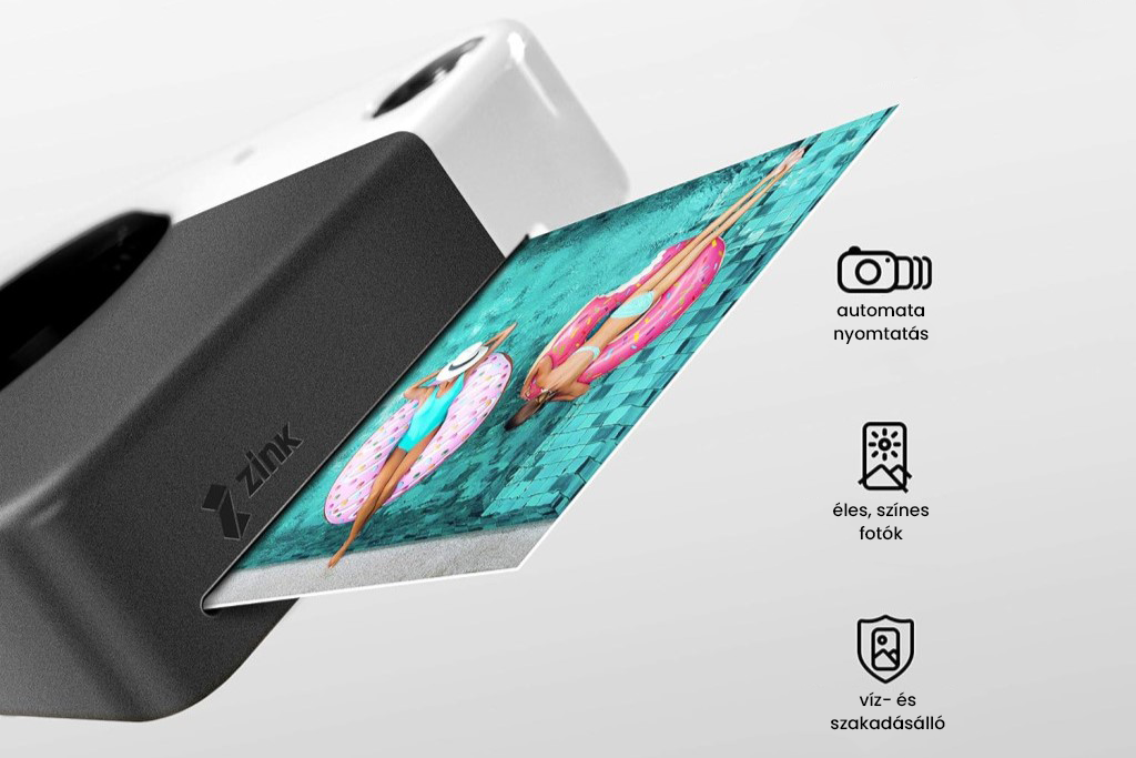 A kinyomtatott képek 55,3 x 86,3 mm méretűek, vízállóak, tartósak és öntapadós hátoldallal készülnek. Ez praktikus választássá teszi a fényképezőt emlékek megőrzéséhez, dekoráláshoz vagy személyes ajándékok készítéséhez.
