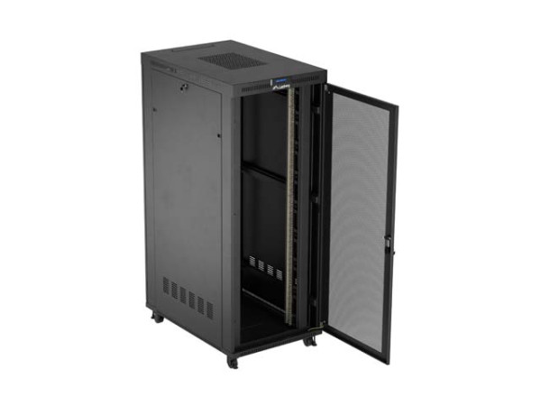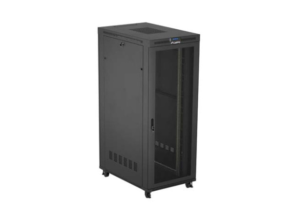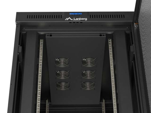 Lanberg FF01-8242-23BL 19" 42U SZÉL:800mm MÉLY:1200mm MAG:2127mm lapraszerelt LCD hálós fémajtós fekete álló rack szekrény