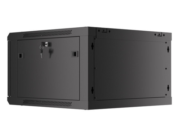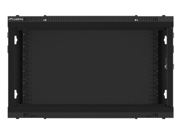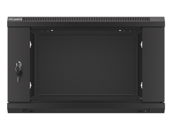 Lanberg WF01-6606-10B 19" 6U SZÉL:600mm MÉLY:600mm MAG:379mm lapraszerelt üvegajtós fekete fali rack szekrény