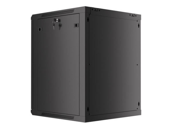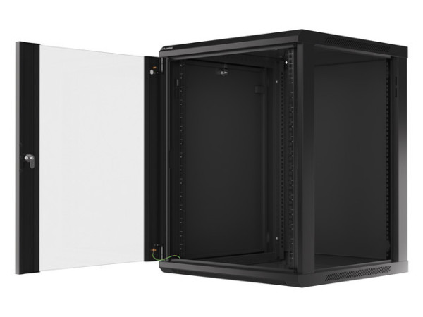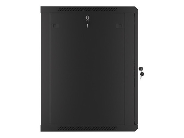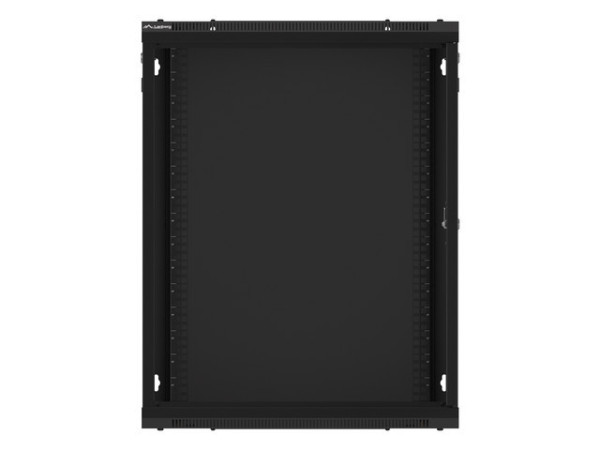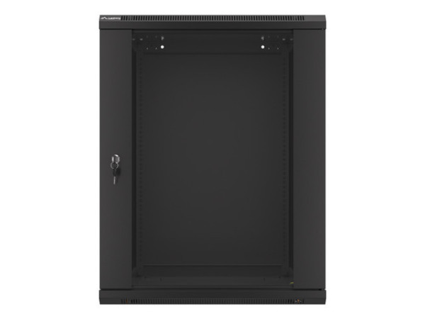 Lanberg WF01-6615-10B 19" 15U SZÉL:600mm MÉLY:600mm MAG:774mm lapraszerelt üvegajtós fekete fali rack szekrény