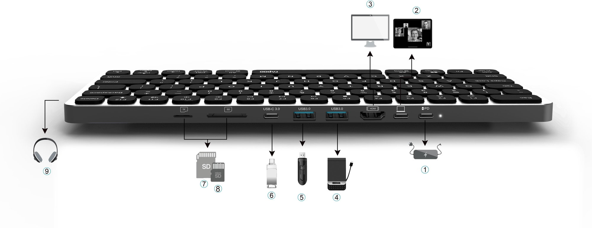 RAPOO UCK-6001 billentyűzet + 8-in-1 USB-C HUB (226412)