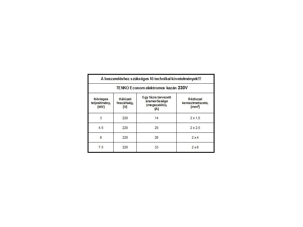 TENKO Ekonom 220V 7,5 kW elektromos kazán