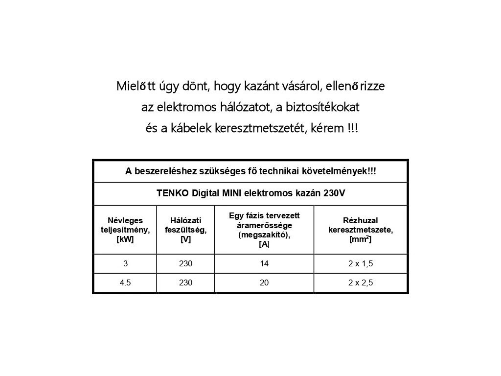 TENKO Mini Digital 220V 4,5 kW elektromos kazán