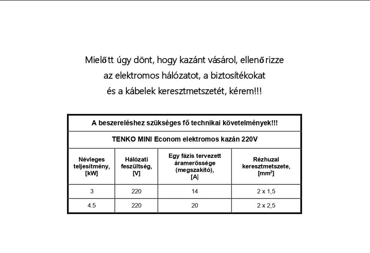 TENKO Mini Ekonom 220V 3 kW elektromos kazán