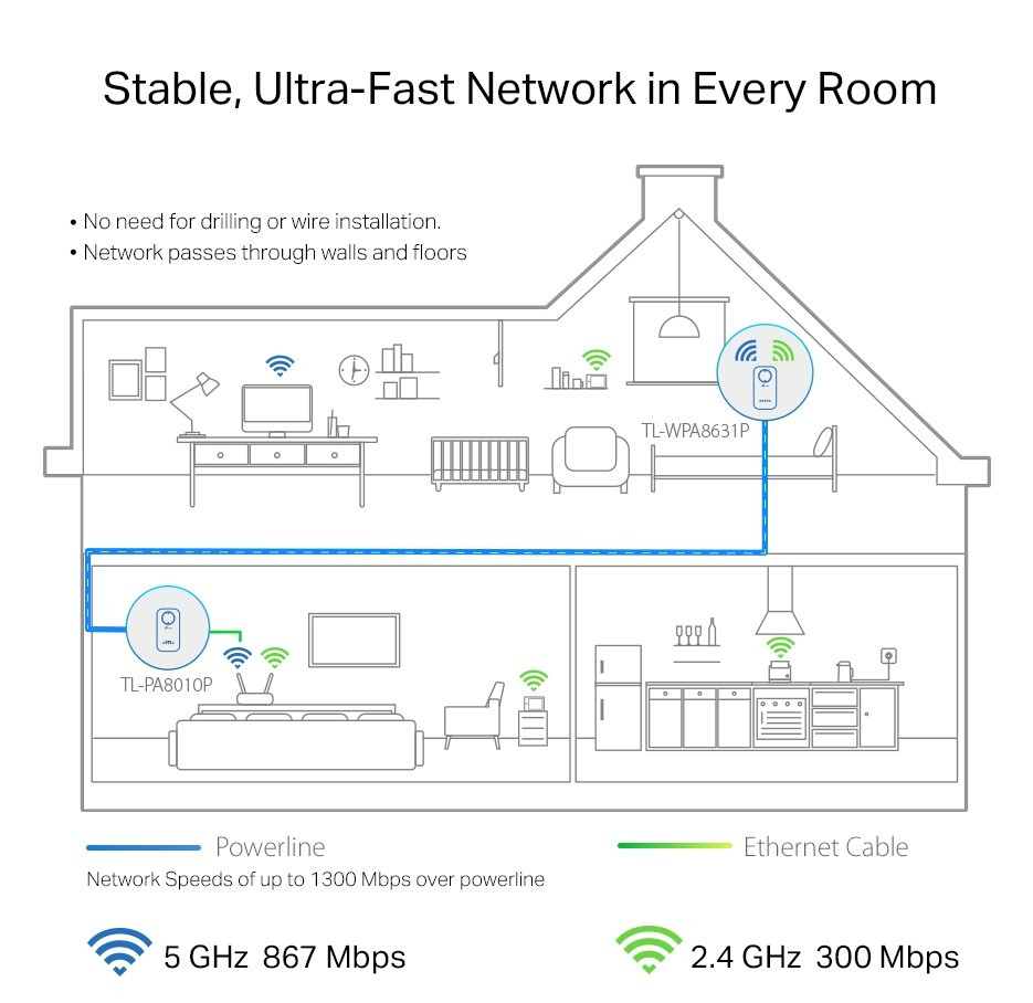 TP-LINK TL-WPA8631P AV1300 Gigabit ac WiFi Extender AV1300 Gigabit Passthrough Powerline ac Wi-Fi Extender