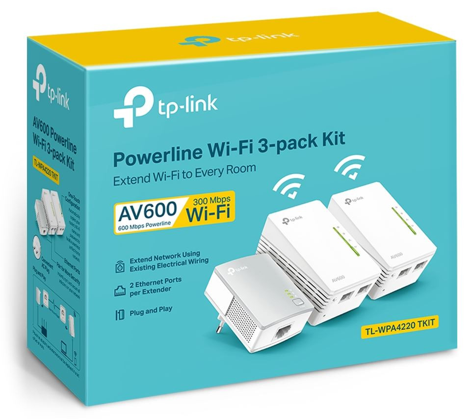 TP-LINK TL-WPA4220 TKIT AV600 Powerline WiFi 3-pack Kit AV600 Powerline Wi-Fi 3-pack Kit