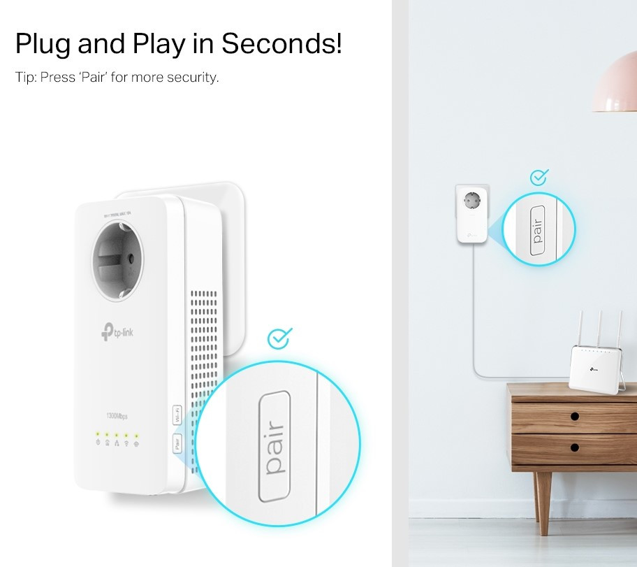 TP-LINK TL-WPA8631P KIT AV1300 Gigabitac WiFi Kit AV1300 Gigabit Passthrough Powerline ac Wi-Fi Kit