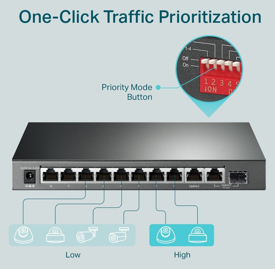 A Priority Mode (Priority Mode) magas prioritást biztosít az 1-2 portoknak, hogy garantálja az érzékeny alkalmazások minőségét