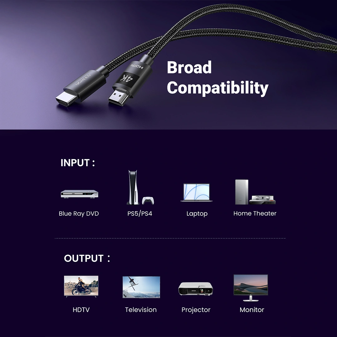 UGREEN 4K HDMI kábel apa - apa fonott 2 m HD119