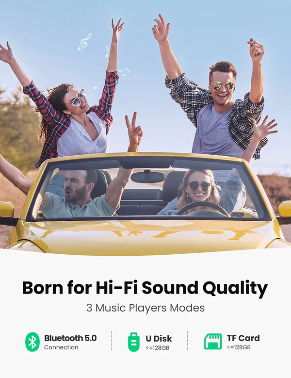 UGREEN Bluetooth autós töltő 5.0+PD+QC3.0+USB Flash Drive+TF fekete CD229