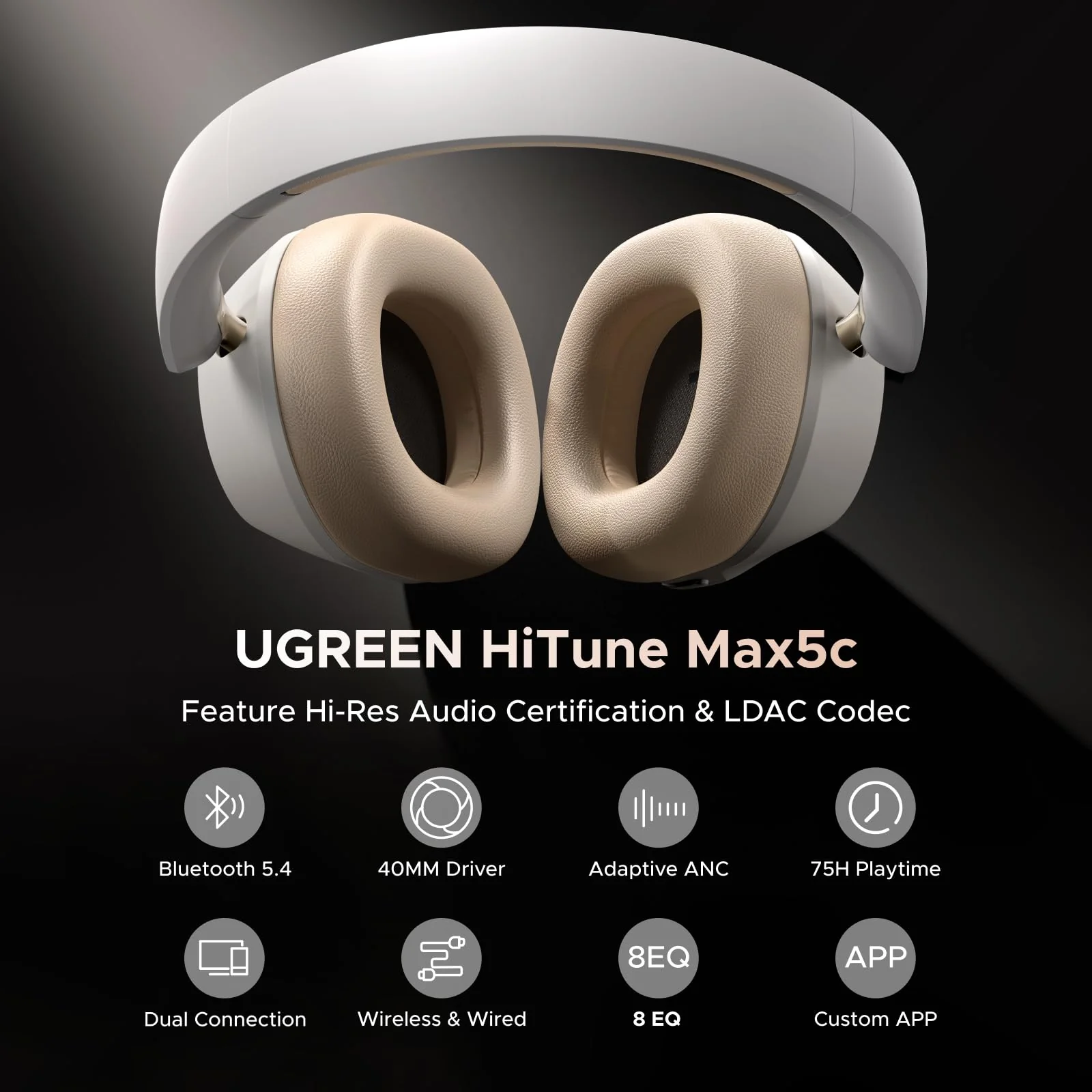 UGREEN HiTune Max5c hibrid aktív zajszűréssel fejhallgató fehér HP203