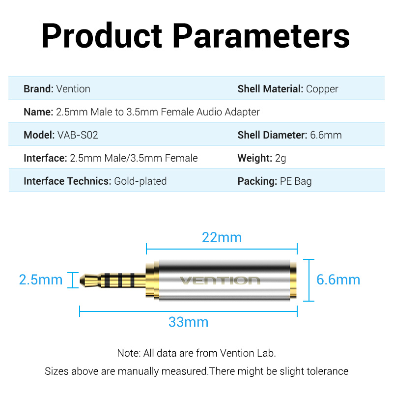 Vention 2.5mm jack/M -> 3.5mm jack/F, (audio), adapter
