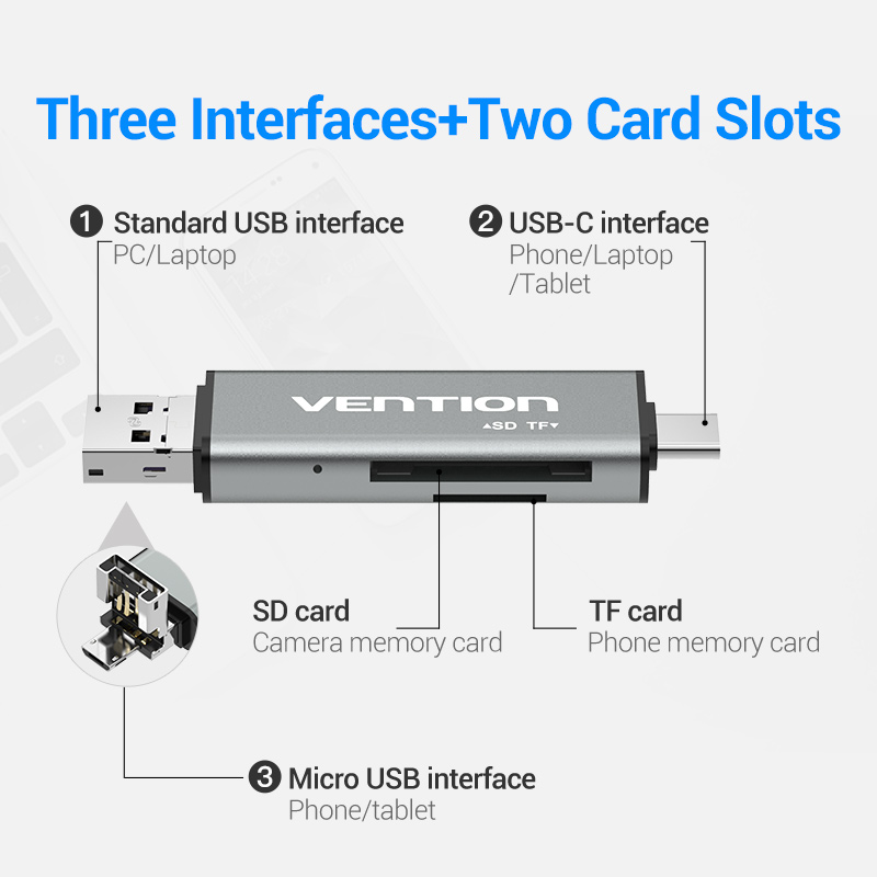Vention USB 2.0, (multifunkciós, szürke), kártyaolvasó