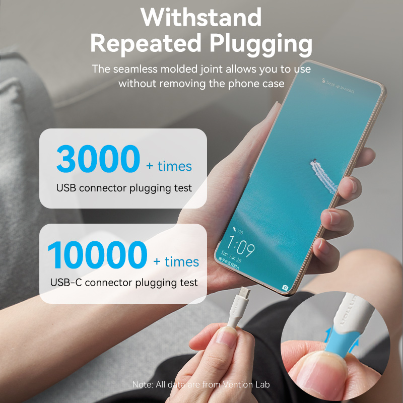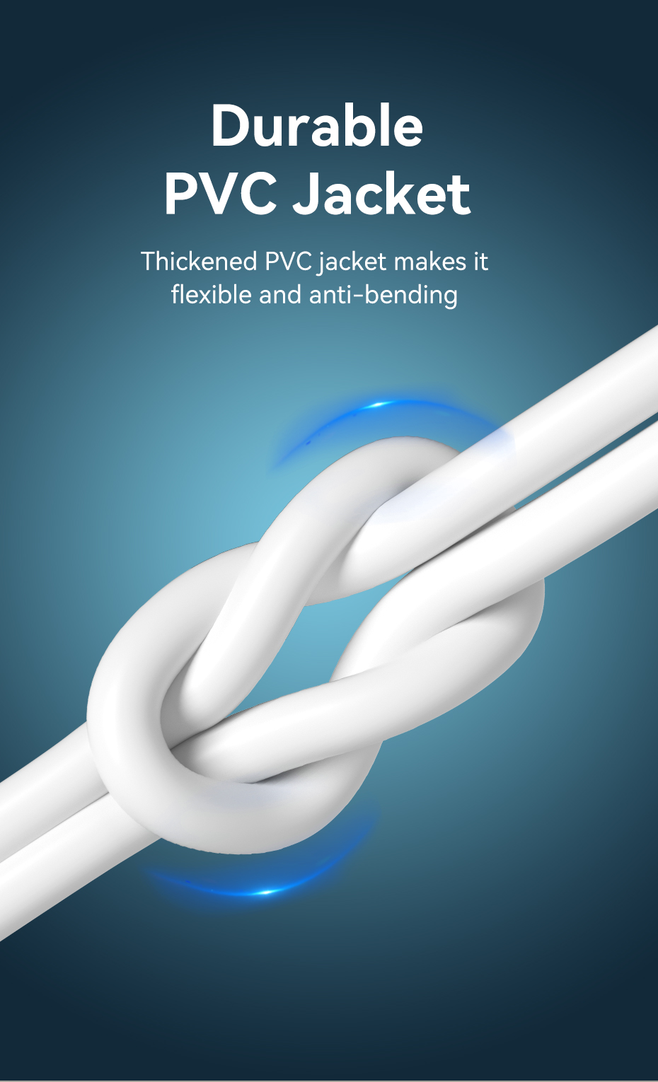 A fehér színű kábel esztétikus megjelenésével jól illeszkedik modern környezetbe, miközben 3,8 mm külső átmérője kényelmes kezelhetőséget ad. USB-A és USB-C csatlakozóinak köszönhetően számos mai készülékhez használható adatkábelként.