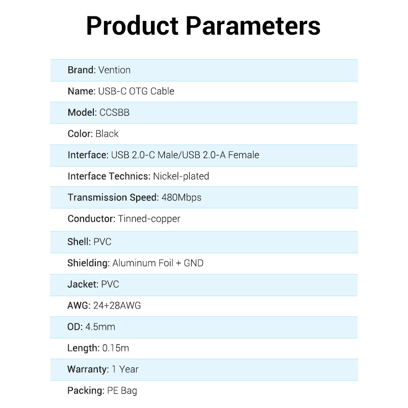 Vention USB-C 2.0/M -> USB-A/F, 0,15m, (OTG,fekete,PVC), kábel