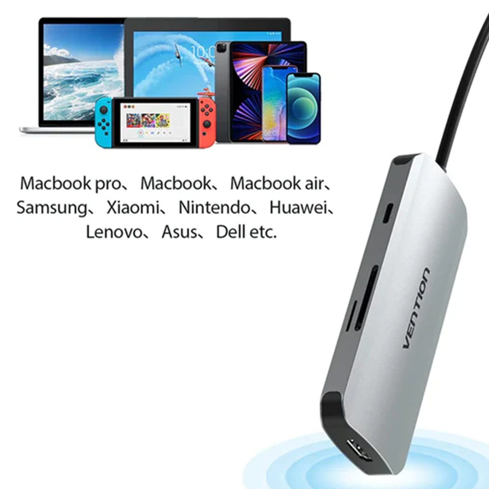 Vention 7 in 1 dokkoló, USB-C -> HDMI/USB 3.0x3/SD/TF/PD