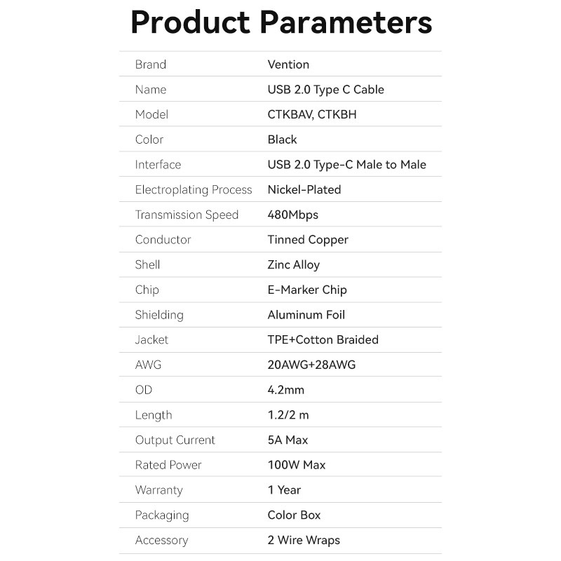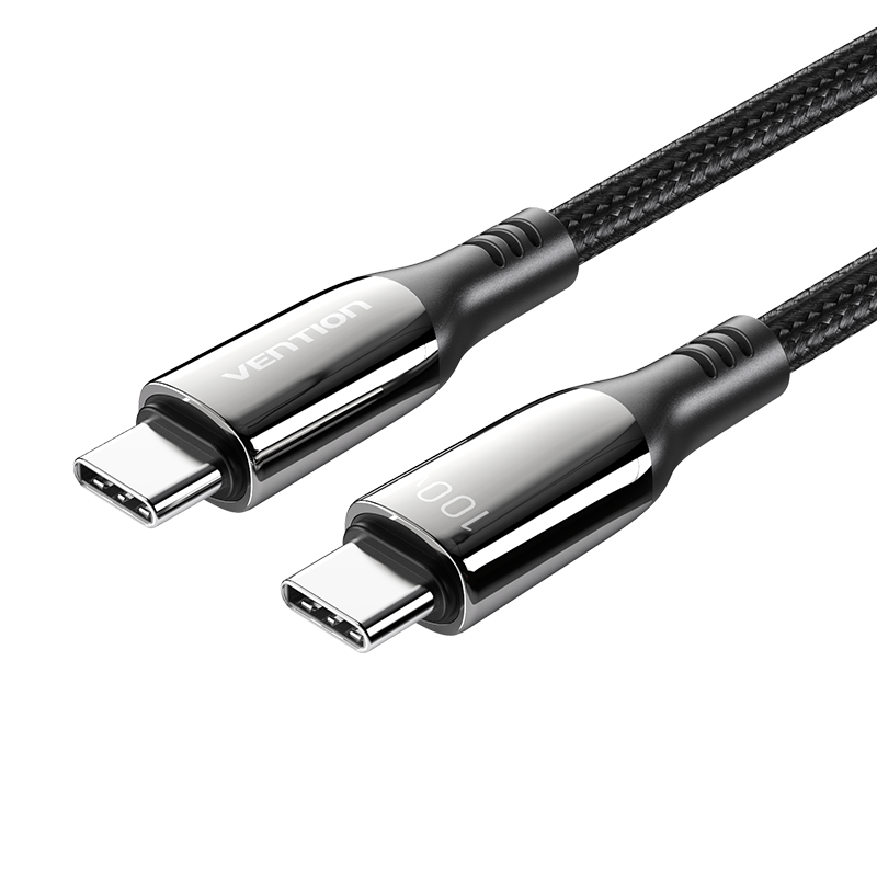 Cotton Braided USB 2.0 C Male to C Male 5A Cable 2M Black Zinc Alloy Type
