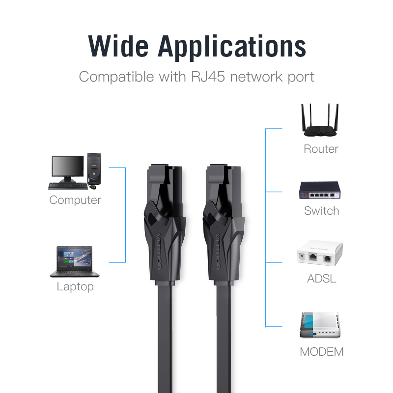 Vention UTP Patch (Cat.6, lapos, fekete), 3m, kábel